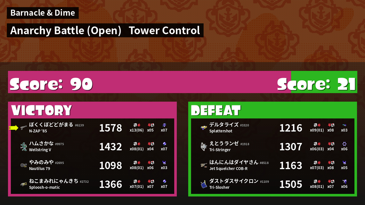 | Mode | Tower Control - Anarchy Battle (Open) |