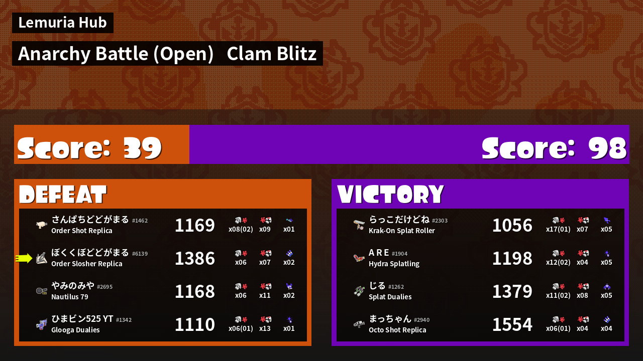| Mode | Clam Blitz - Anarchy Battle (Open) |