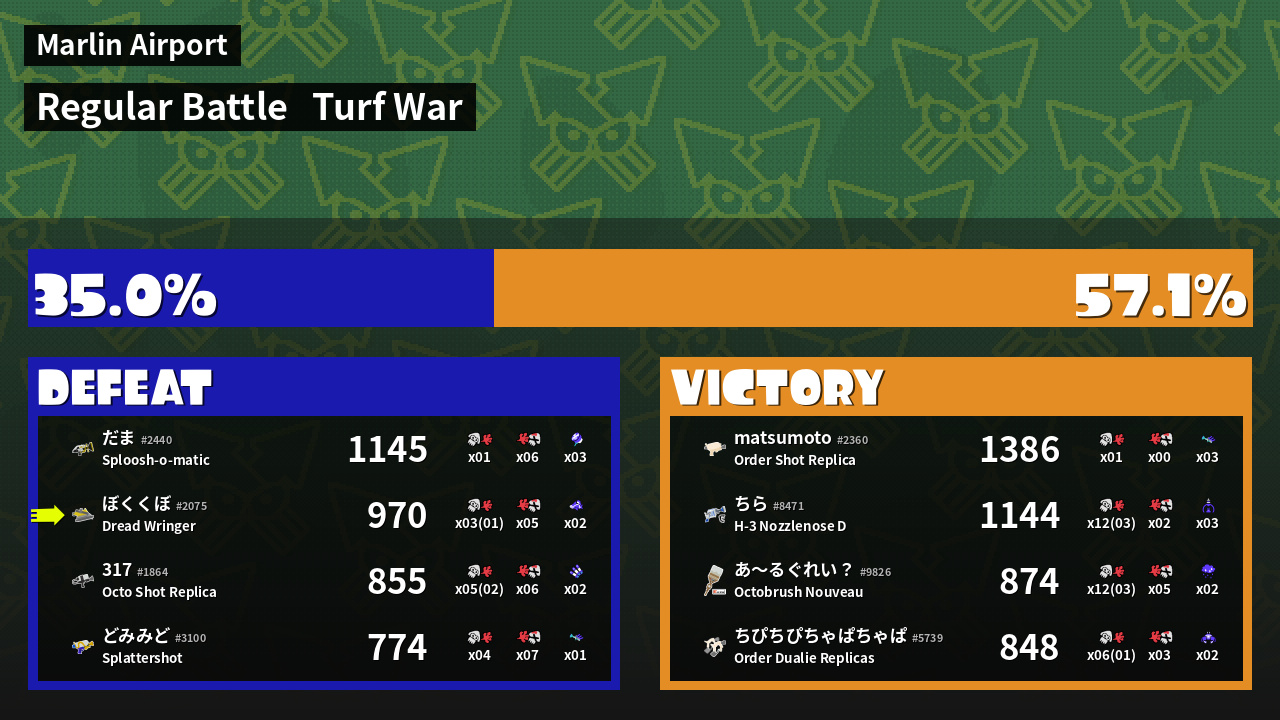 | Mode | Turf War - Regular Battle | ||