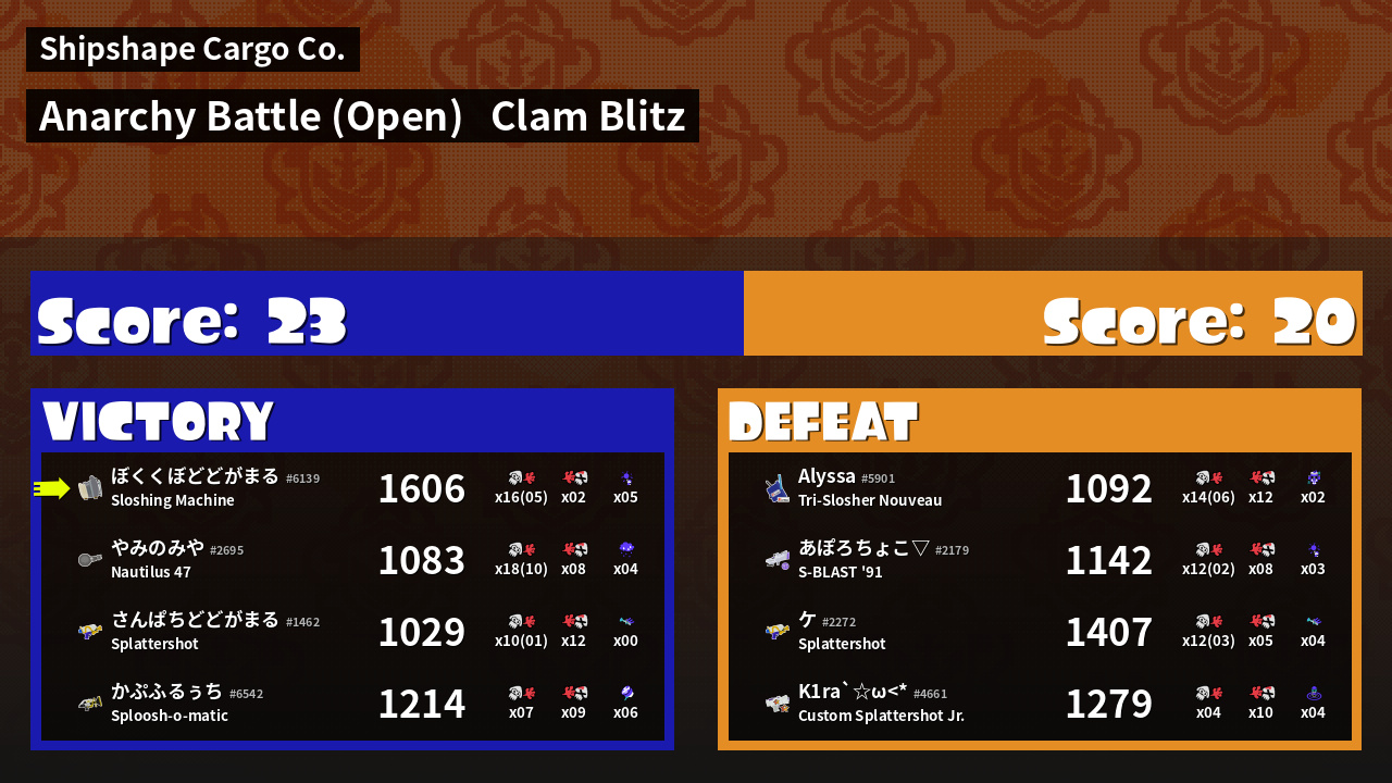 | Mode | Clam Blitz - Anarchy Battle (Open) |