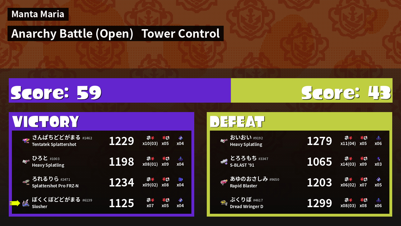 | Mode | Tower Control - Anarchy Battle (Open) |