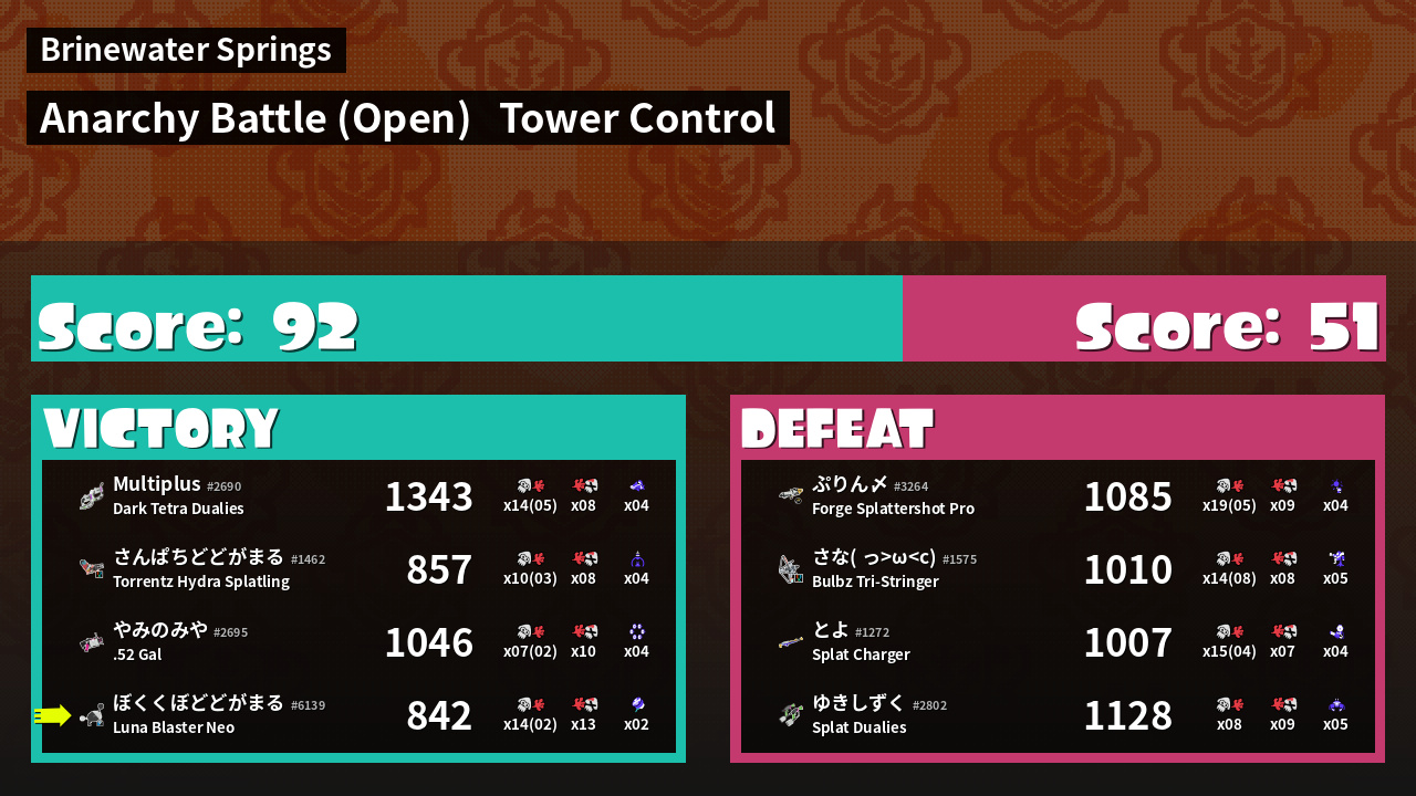 | Mode | Tower Control - Anarchy Battle (Open) |