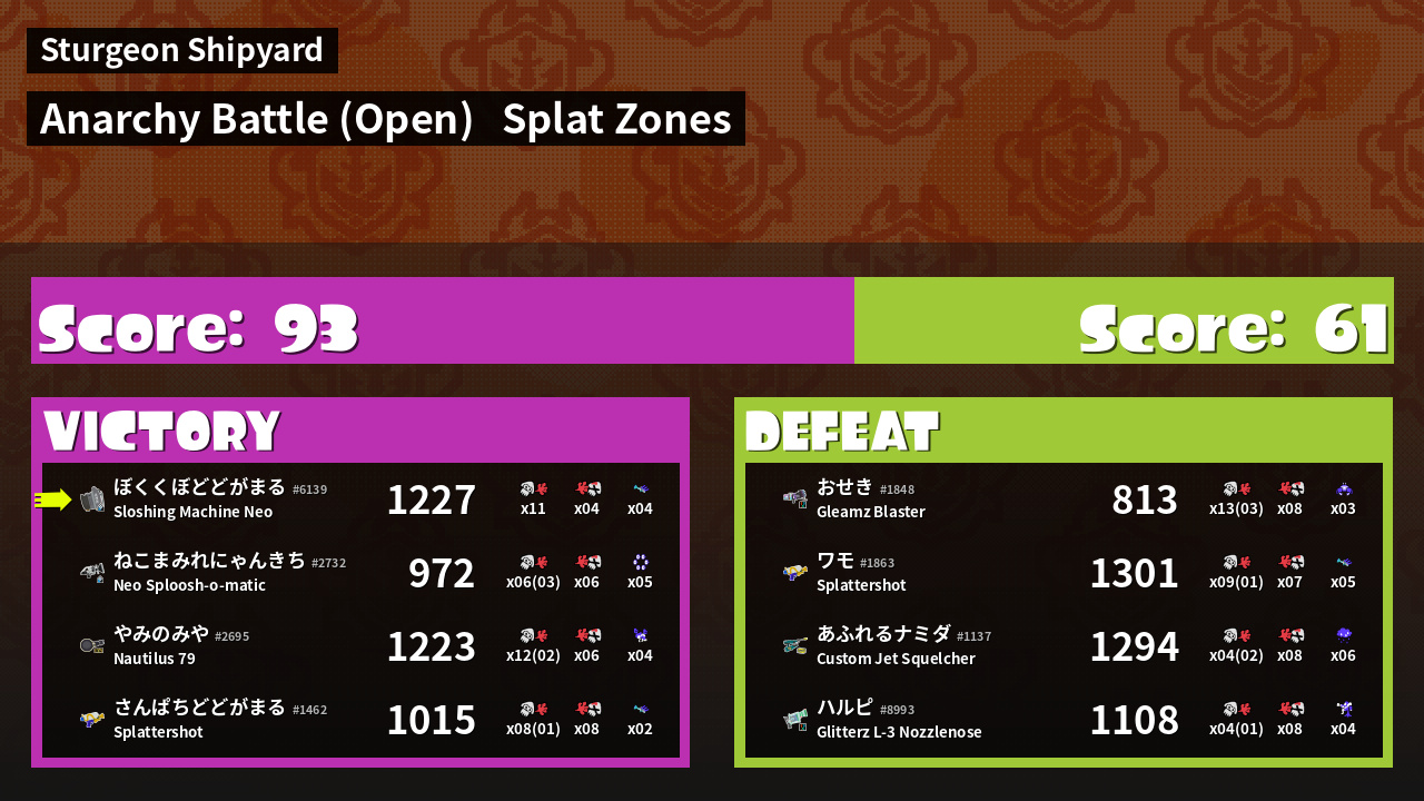 | Mode | Splat Zones - Anarchy Battle (Open) |