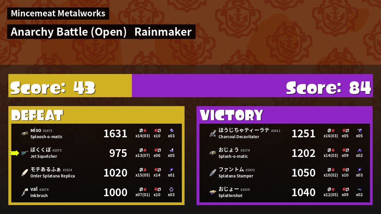 | Mode | Rainmaker - Anarchy Battle (Open) | ||