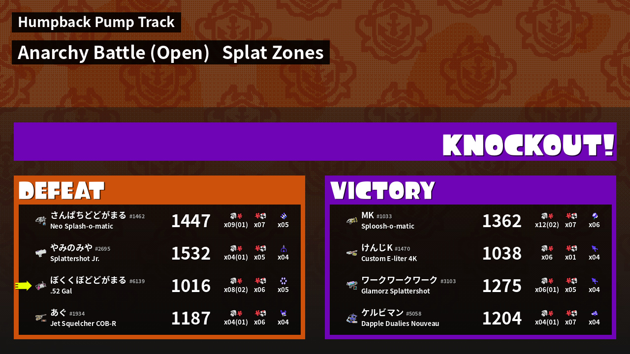 | Mode | Splat Zones - Anarchy Battle (Open) |