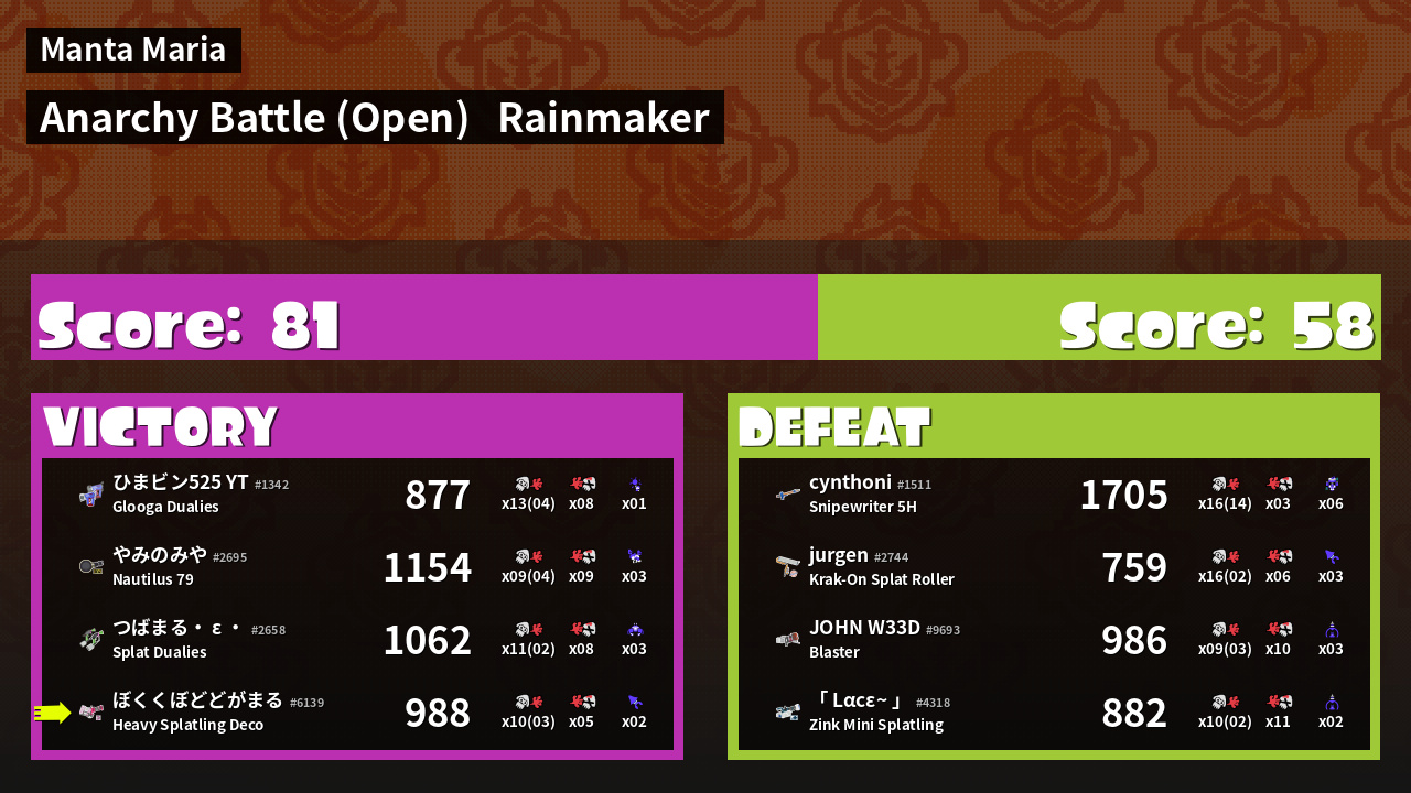 | Mode | Rainmaker - Anarchy Battle (Open) |