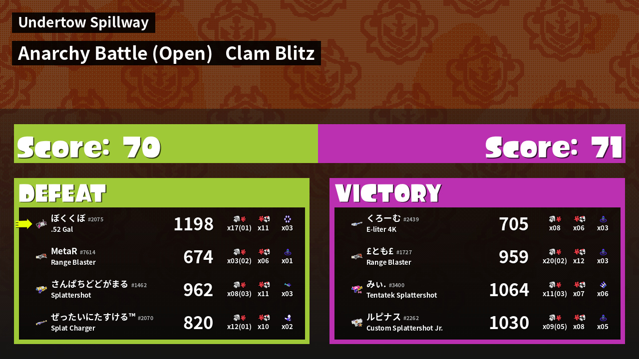 | Mode | Clam Blitz - Anarchy Battle (Open) | ||