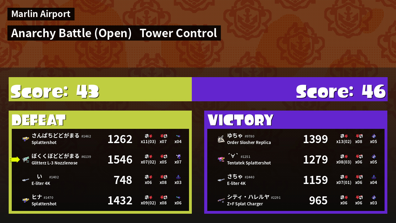 | Mode | Tower Control - Anarchy Battle (Open) |