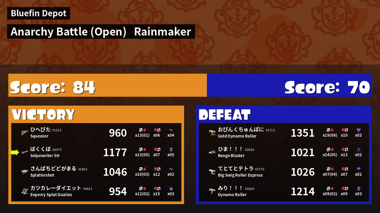 | Mode | Rainmaker - Anarchy Battle (Open) | ||