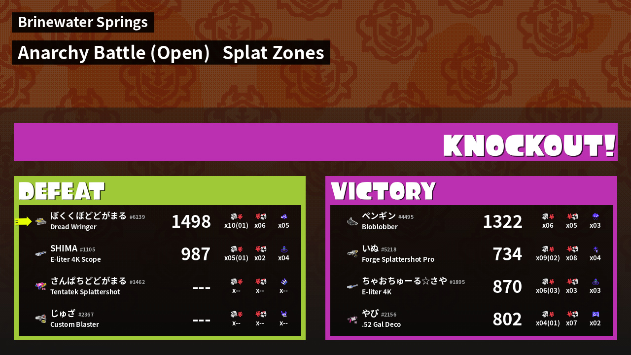 | Mode | Splat Zones - Anarchy Battle (Open) |