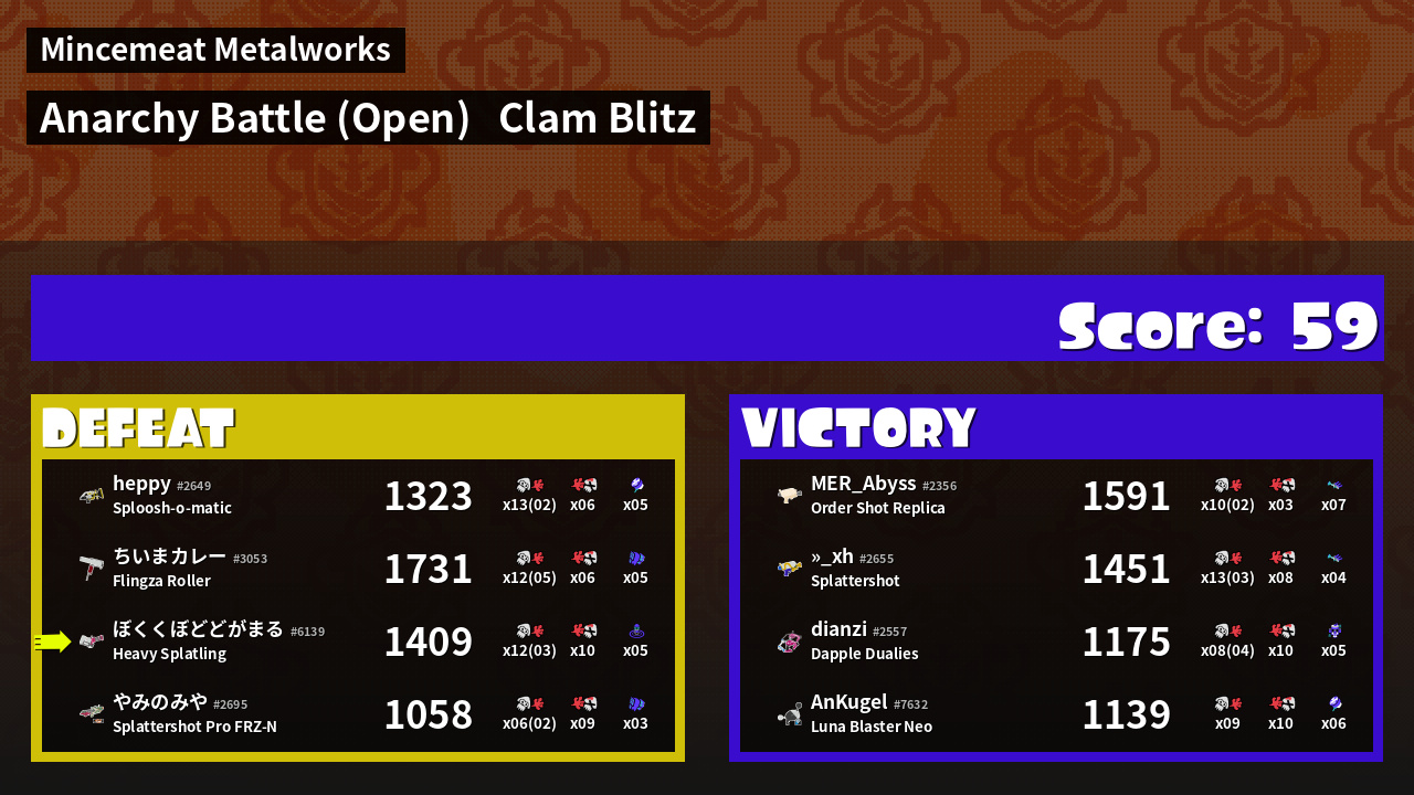 | Mode | Clam Blitz - Anarchy Battle (Open) |