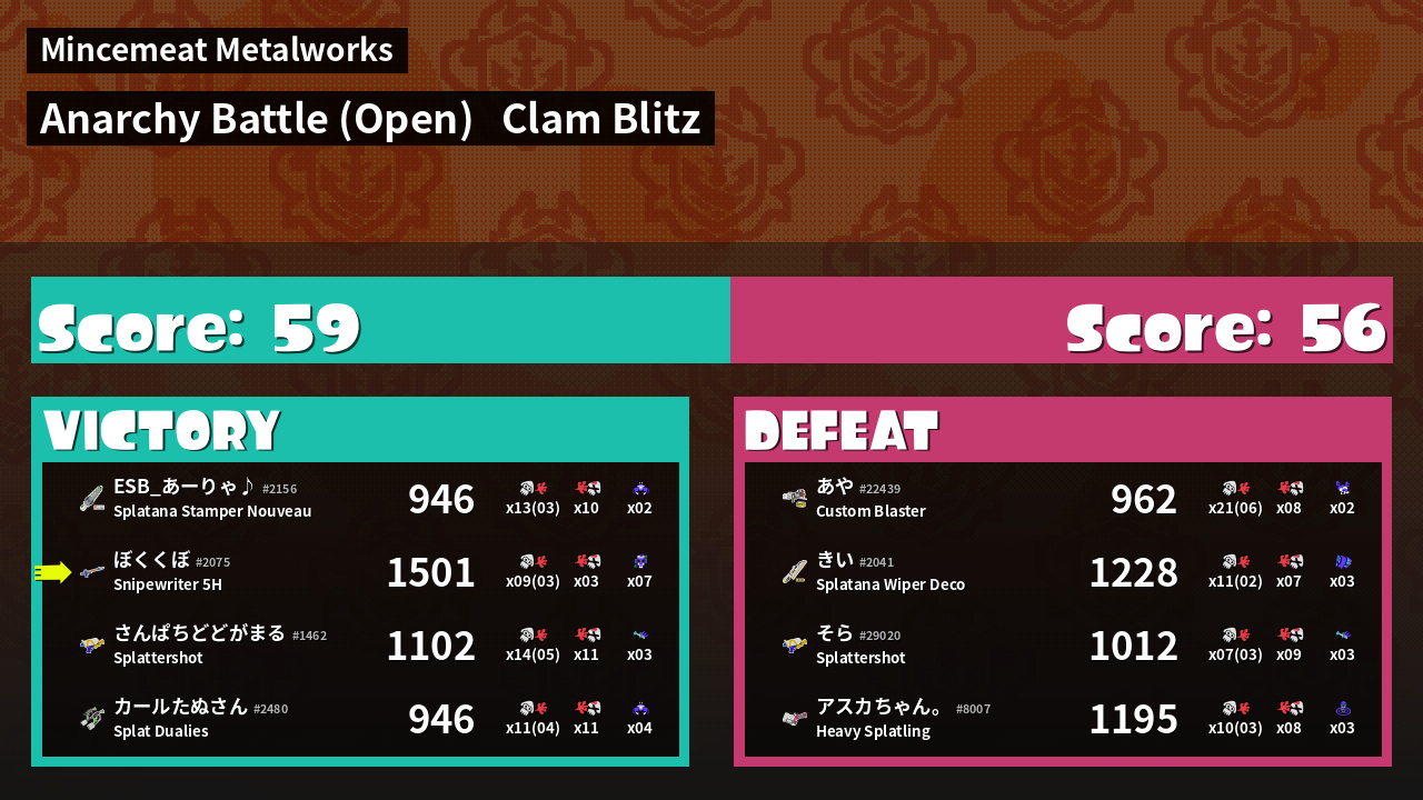 | Mode | Clam Blitz - Anarchy Battle (Open) | ||