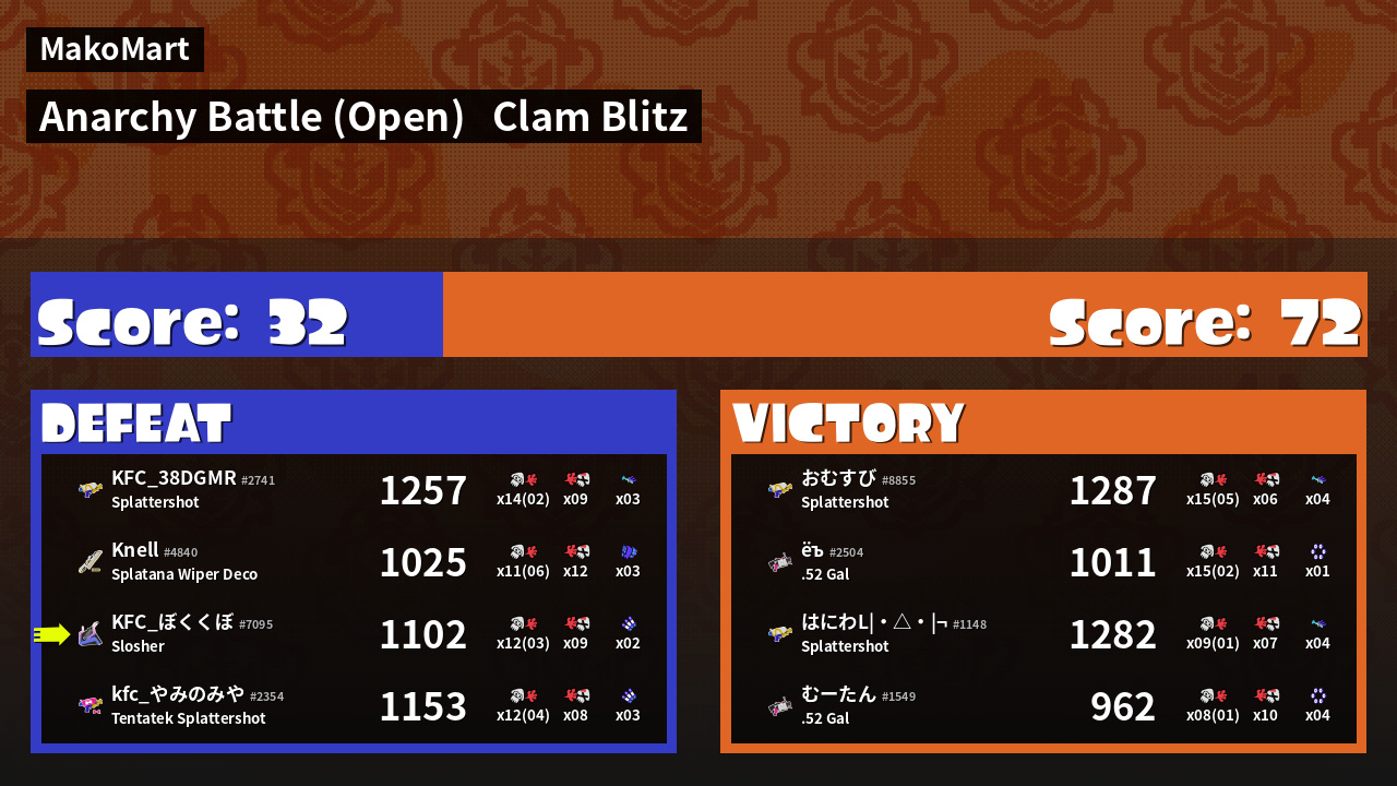 | Mode | Clam Blitz - Anarchy Battle (Open) | ||