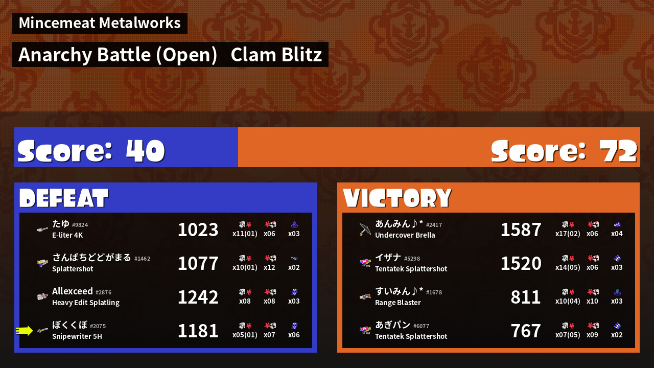 | Mode | Clam Blitz - Anarchy Battle (Open) | ||