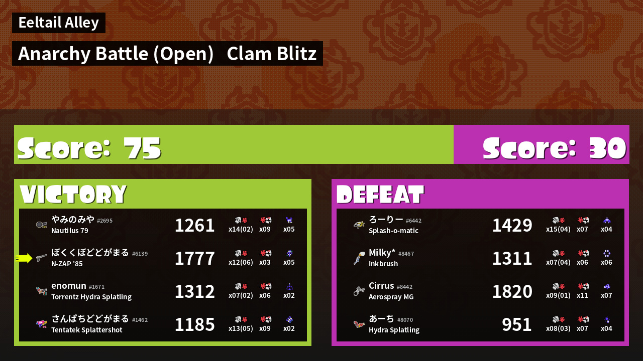 | Mode | Clam Blitz - Anarchy Battle (Open) |