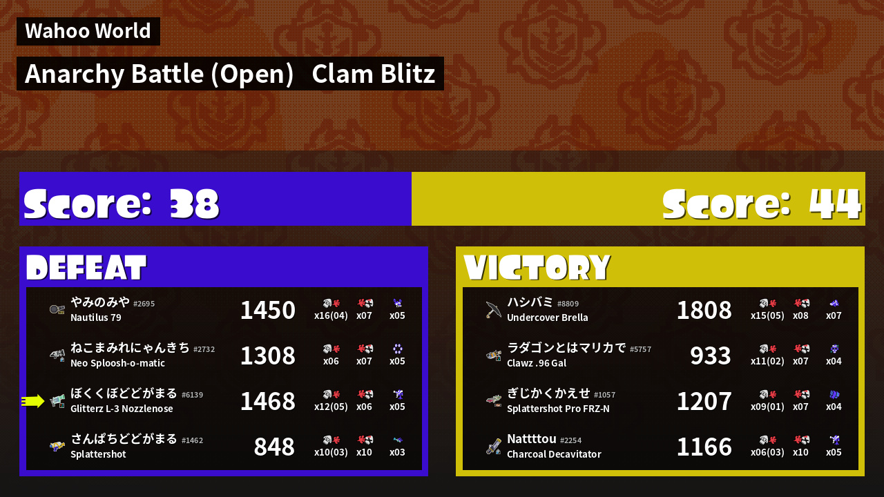 | Mode | Clam Blitz - Anarchy Battle (Open) |