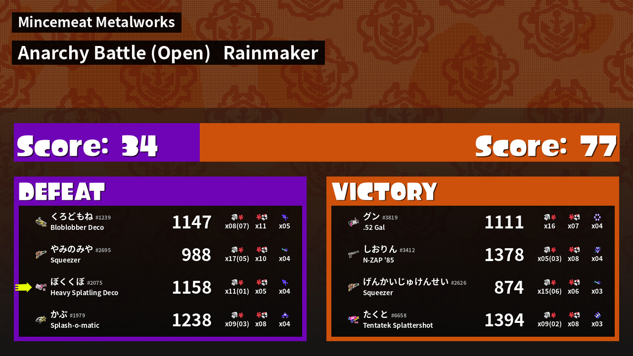 | Mode | Rainmaker - Anarchy Battle (Open) | ||