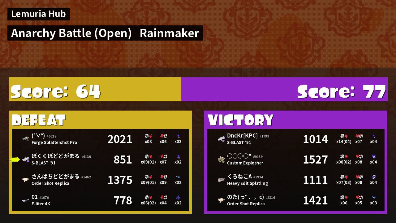 | Mode | Rainmaker - Anarchy Battle (Open) |