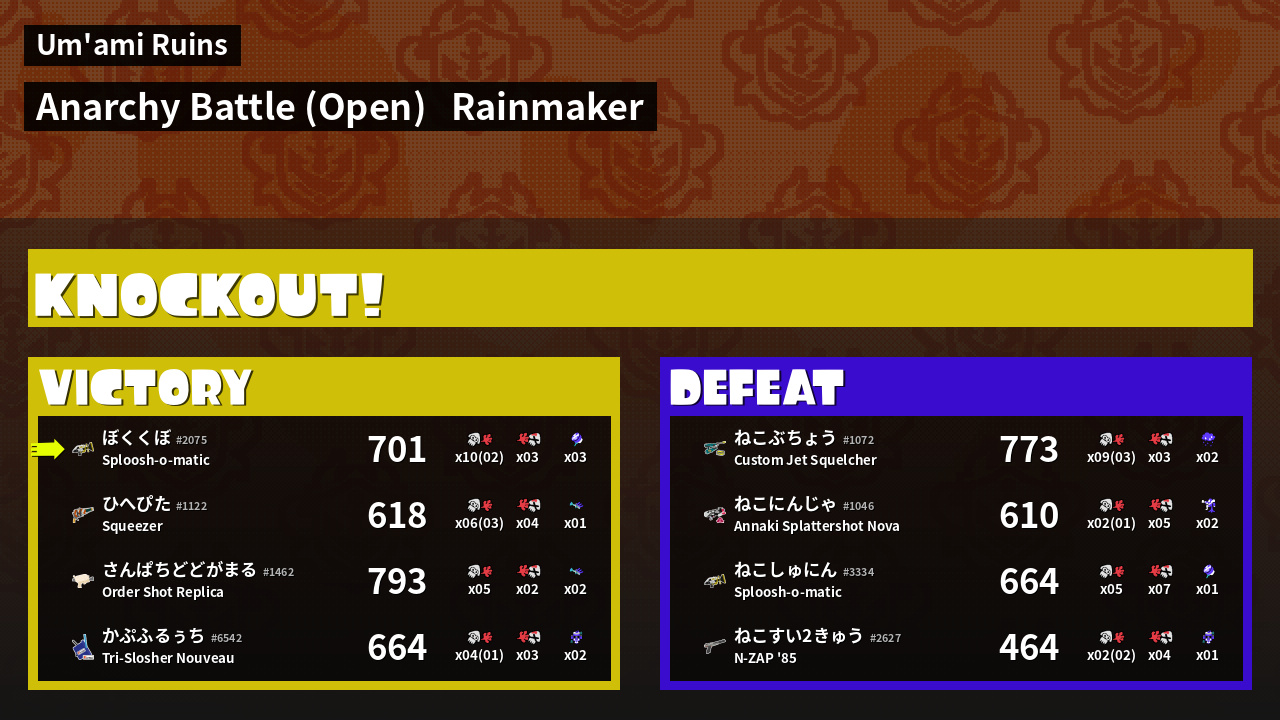 | Mode | Rainmaker - Anarchy Battle (Open) | ||