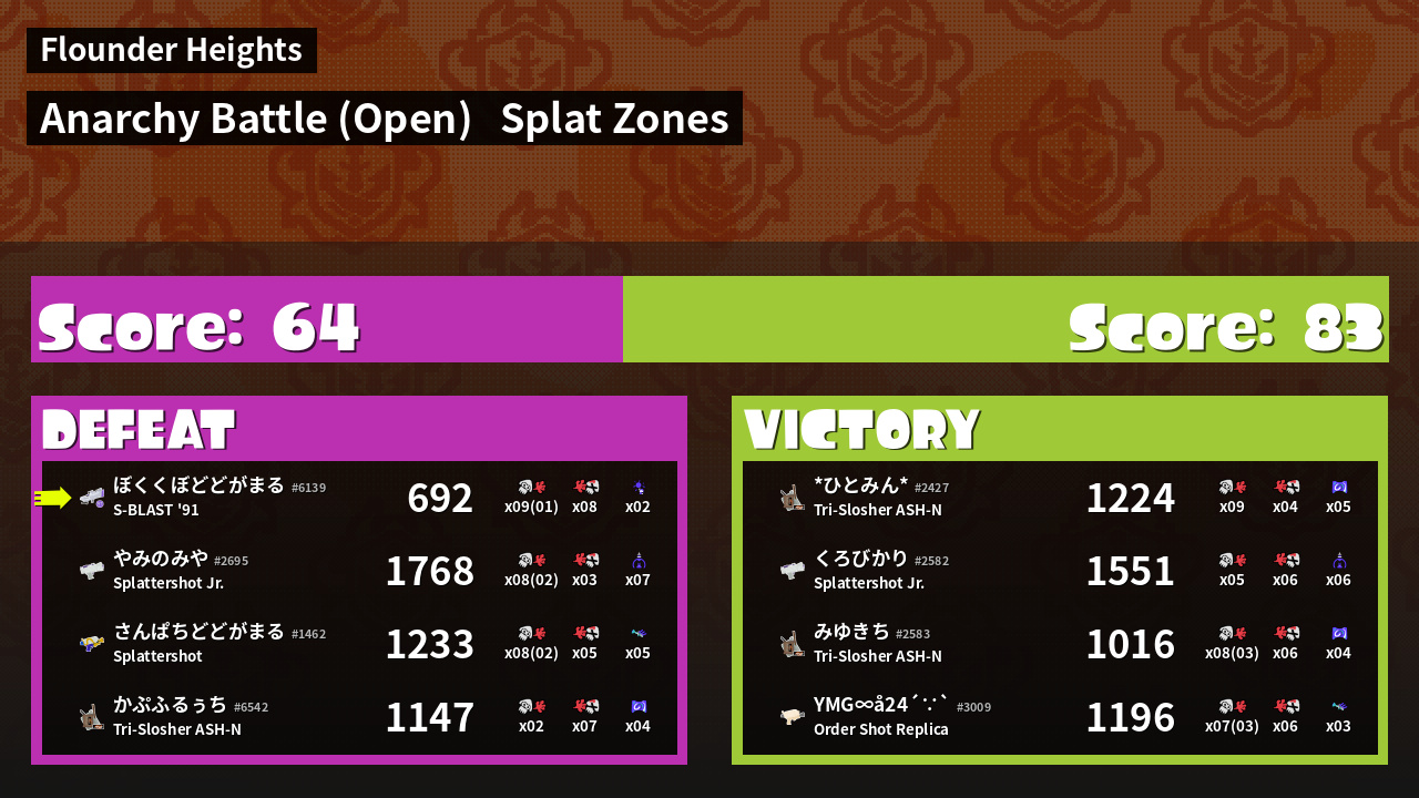 | Mode | Splat Zones - Anarchy Battle (Open) |