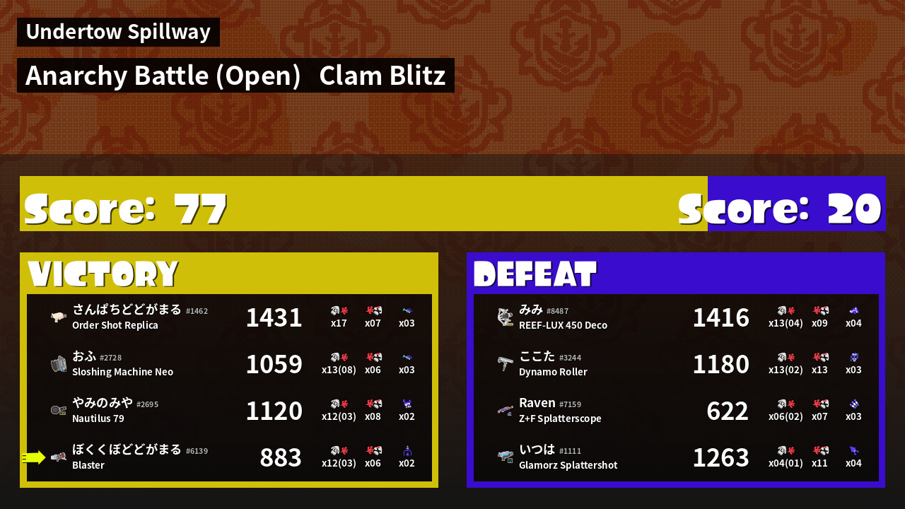 | Mode | Clam Blitz - Anarchy Battle (Open) |
