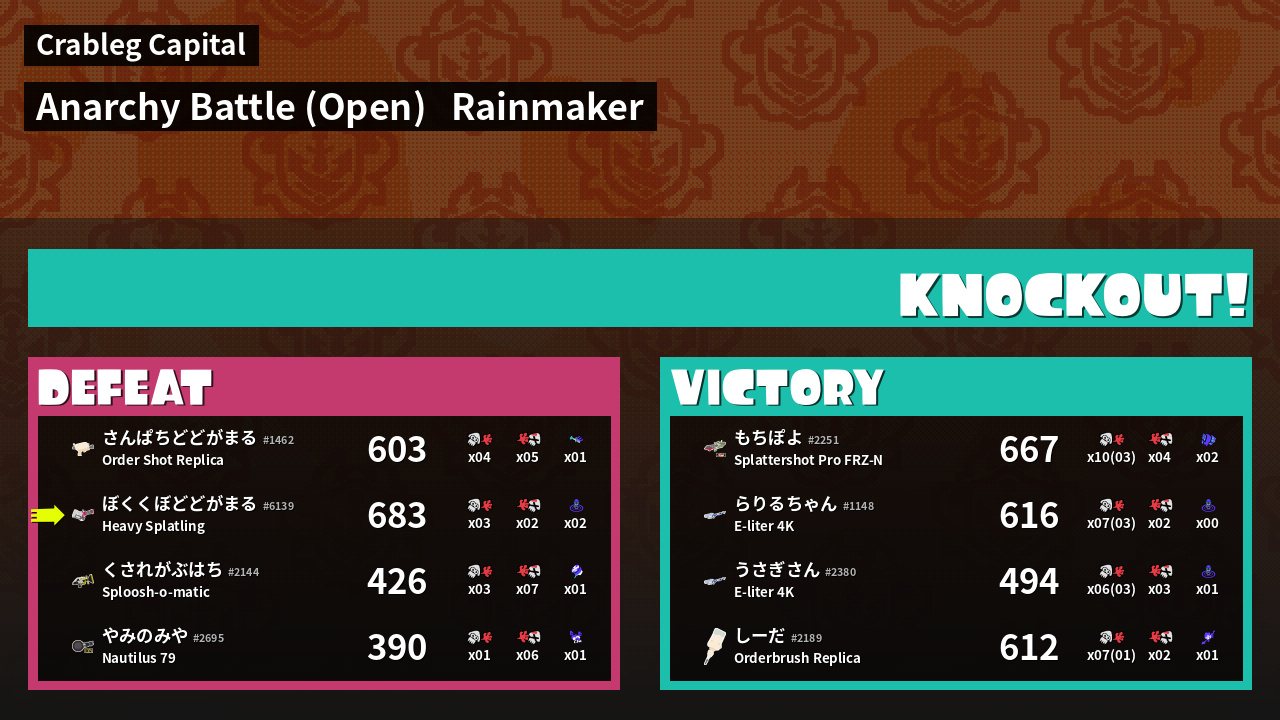 | Mode | Rainmaker - Anarchy Battle (Open) |