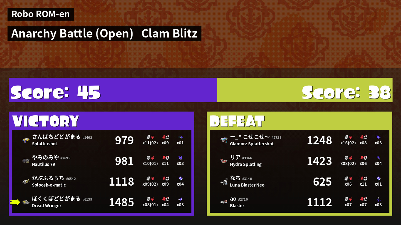 | Mode | Clam Blitz - Anarchy Battle (Open) |