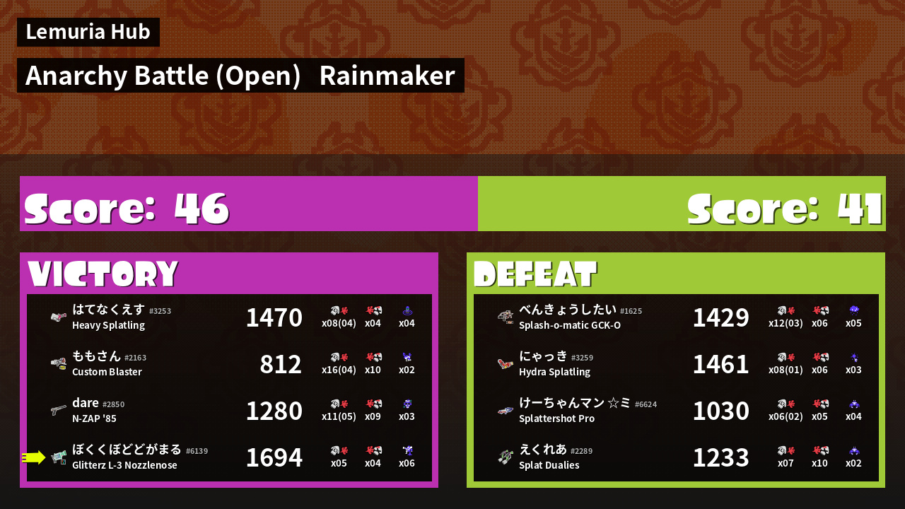 | Mode | Rainmaker - Anarchy Battle (Open) |