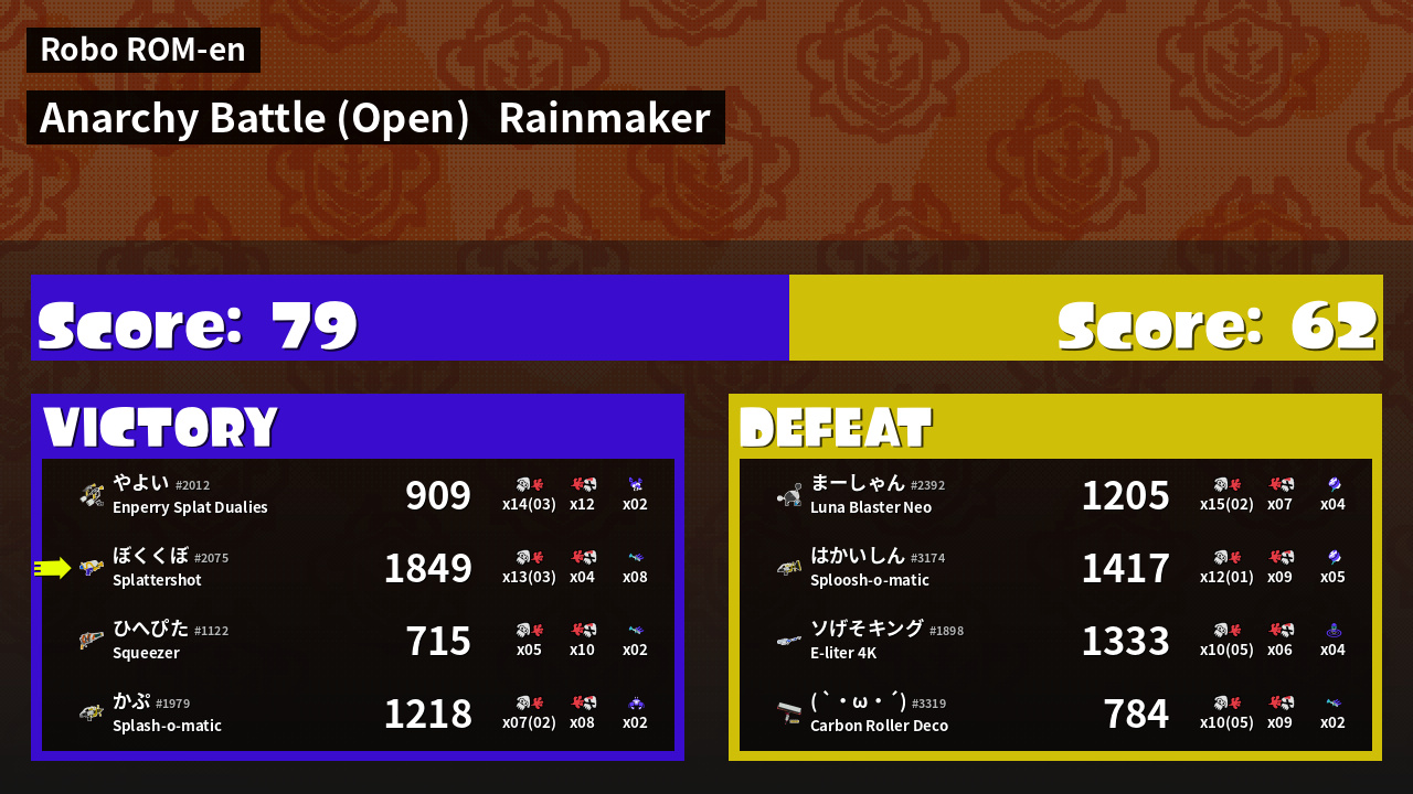 | Mode | Rainmaker - Anarchy Battle (Open) | ||