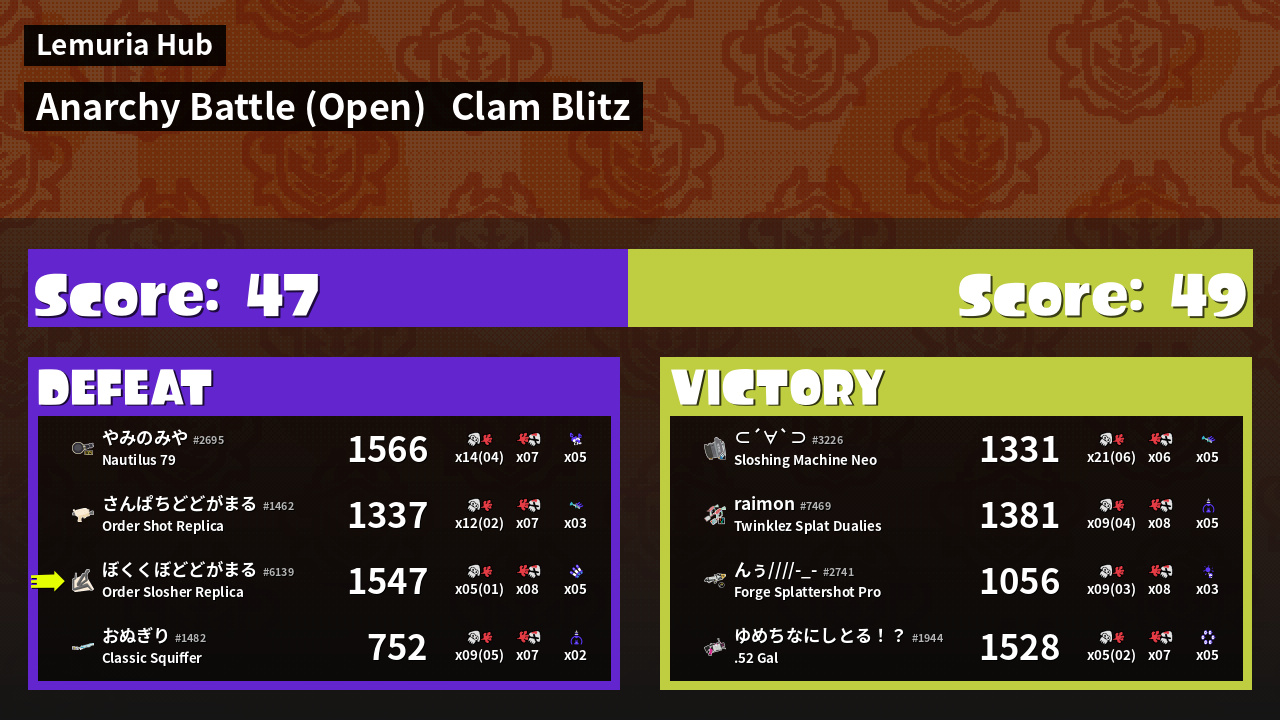 | Mode | Clam Blitz - Anarchy Battle (Open) |