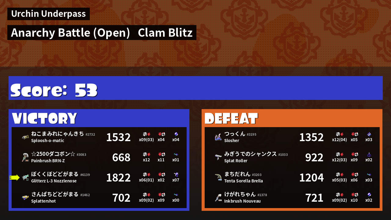 | Mode | Clam Blitz - Anarchy Battle (Open) |