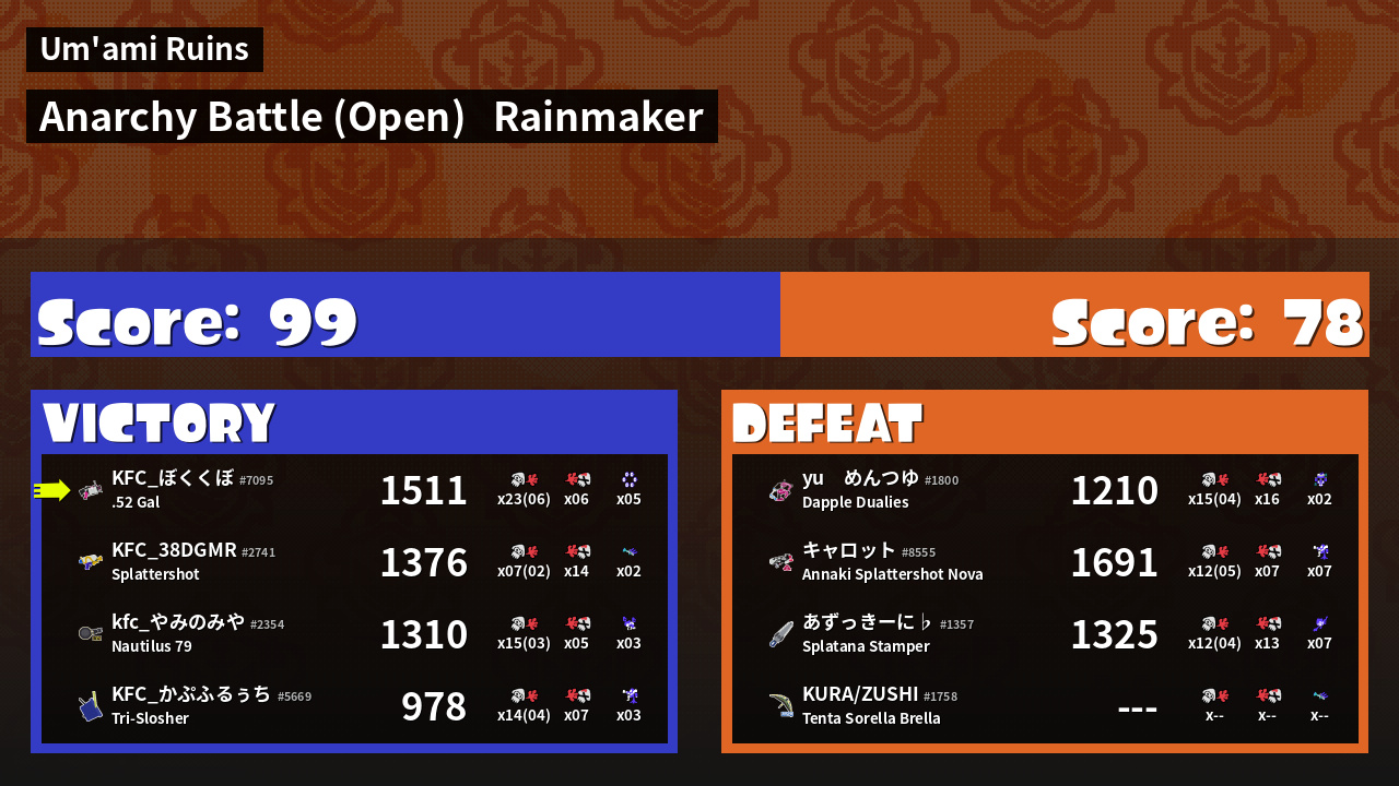 | Mode | Rainmaker - Anarchy Battle (Open) | ||