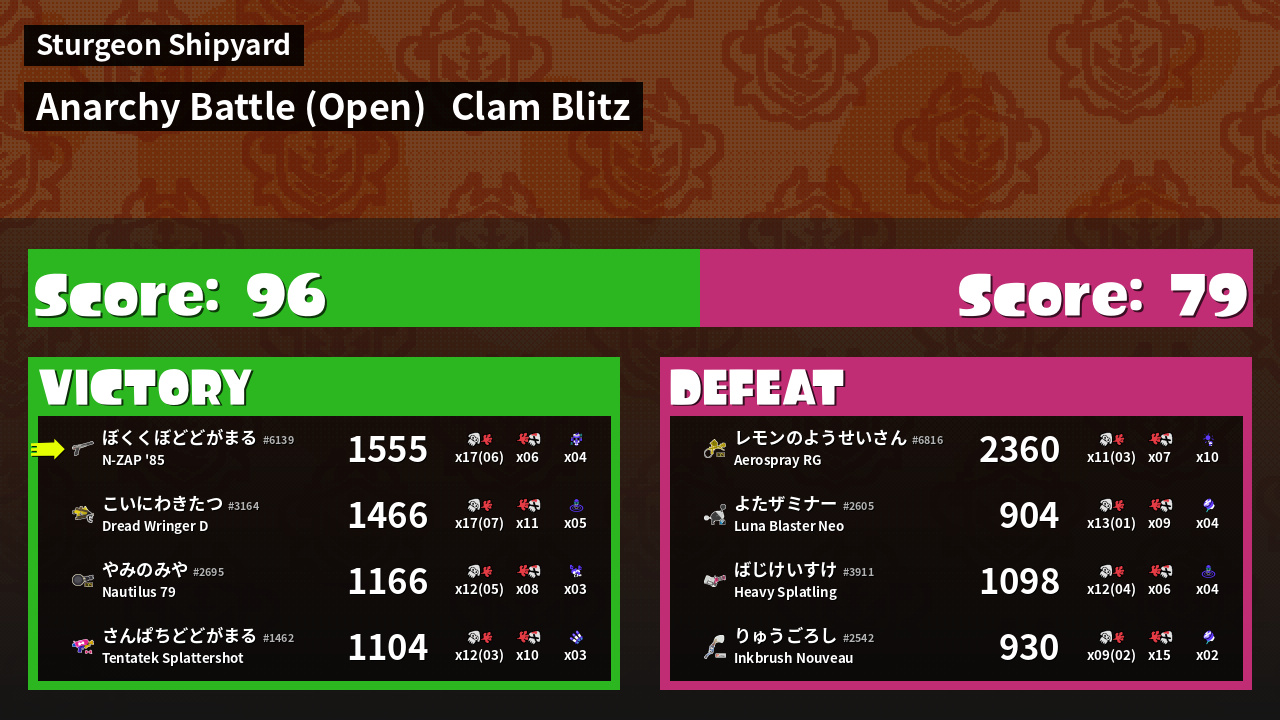 | Mode | Clam Blitz - Anarchy Battle (Open) |