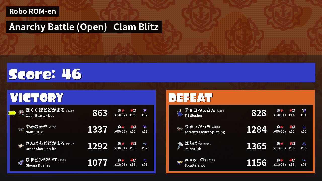 | Mode | Clam Blitz - Anarchy Battle (Open) |
