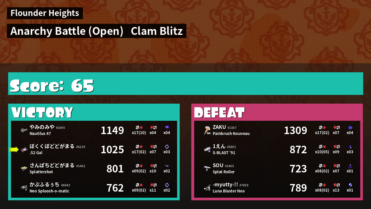 | Mode | Clam Blitz - Anarchy Battle (Open) |