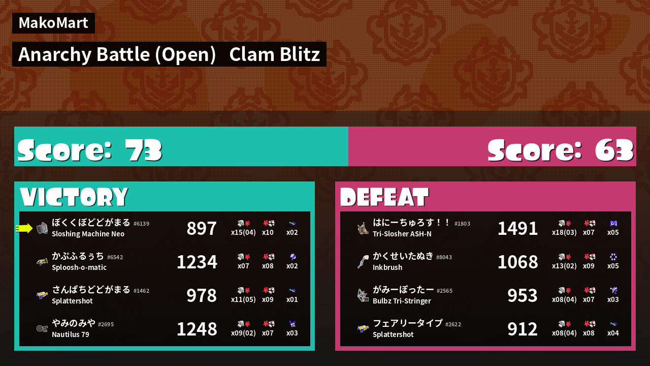 | Mode | Clam Blitz - Anarchy Battle (Open) |