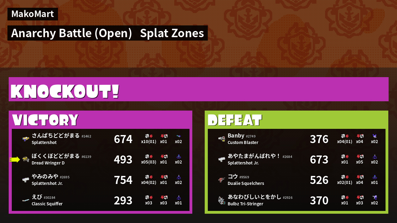 | Mode | Splat Zones - Anarchy Battle (Open) |
