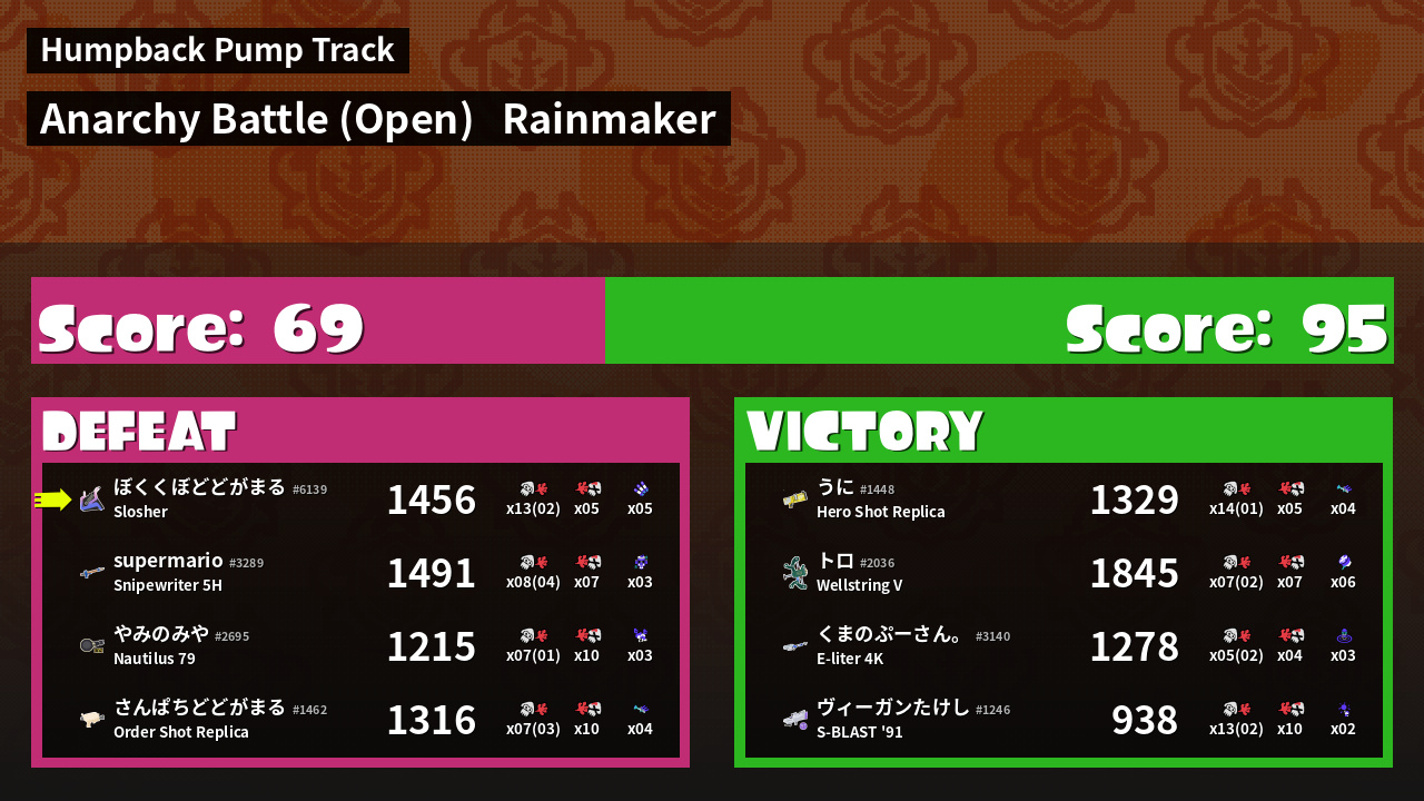 | Mode | Rainmaker - Anarchy Battle (Open) |