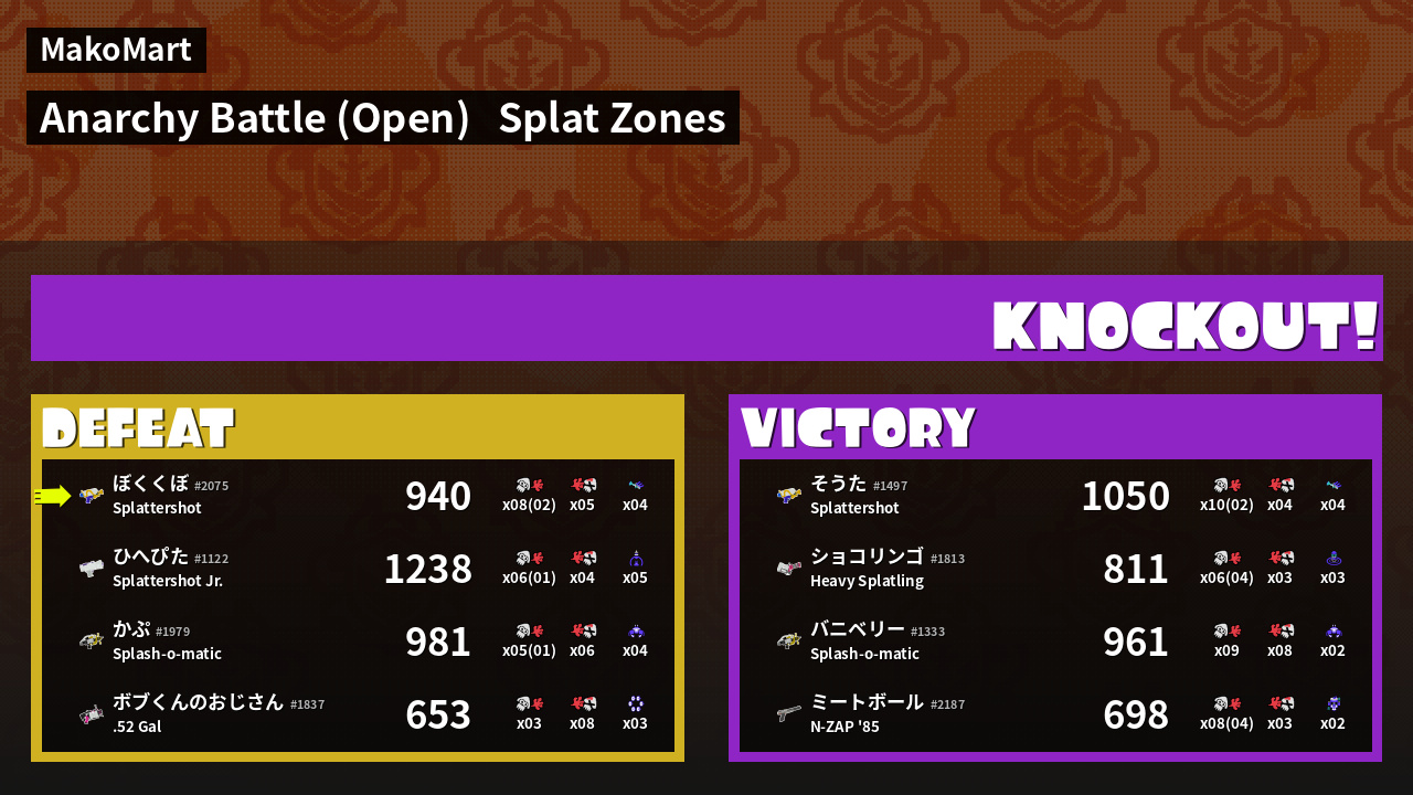 | Mode | Splat Zones - Anarchy Battle (Open) | ||