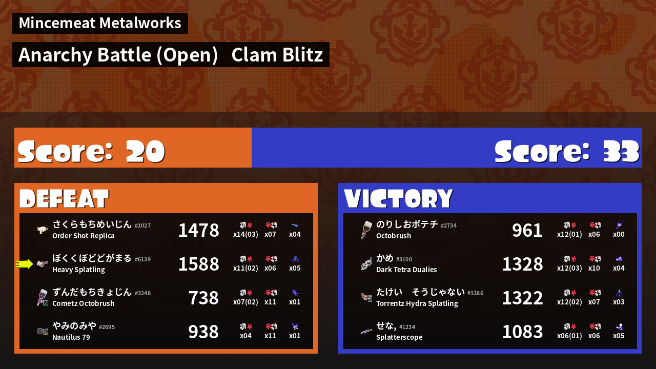 | Mode | Clam Blitz - Anarchy Battle (Open) |
