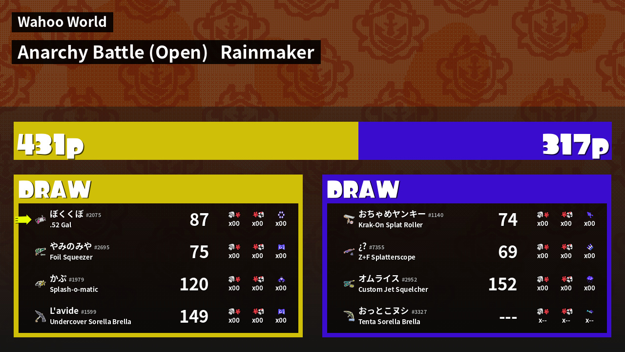 | Mode | Rainmaker - Anarchy Battle (Open) | ||