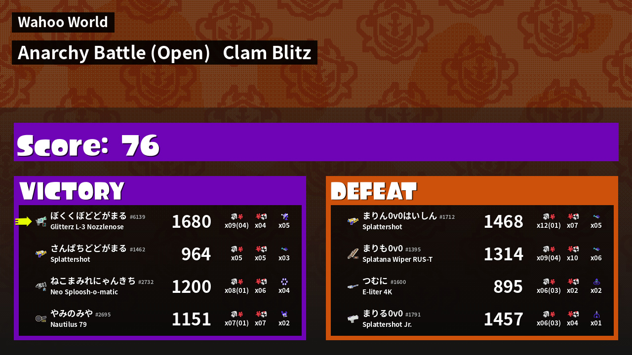 | Mode | Clam Blitz - Anarchy Battle (Open) |