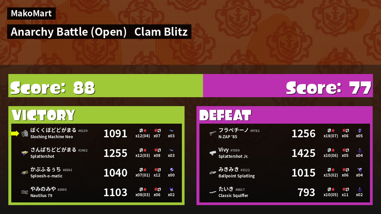 | Mode | Clam Blitz - Anarchy Battle (Open) |
