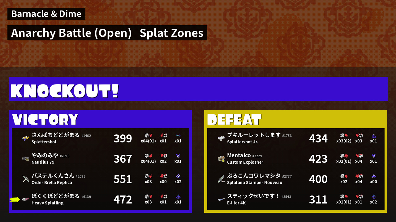 | Mode | Splat Zones - Anarchy Battle (Open) |