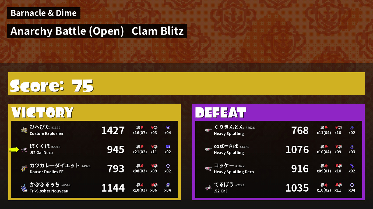 | Mode | Clam Blitz - Anarchy Battle (Open) | ||