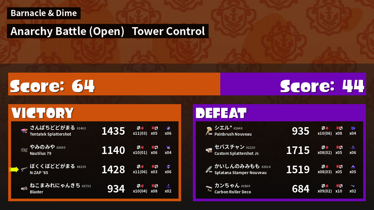 | Mode | Tower Control - Anarchy Battle (Open) |