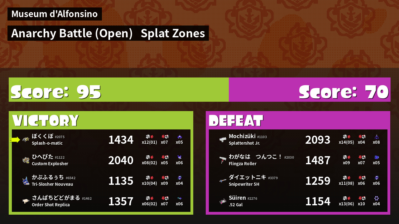 | Mode | Splat Zones - Anarchy Battle (Open) | ||