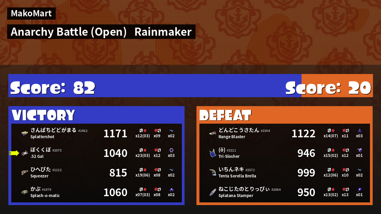| Mode | Rainmaker - Anarchy Battle (Open) | ||