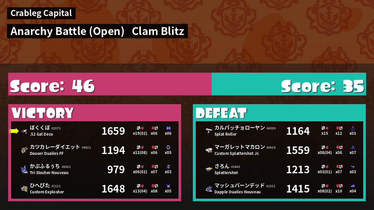 | Mode | Clam Blitz - Anarchy Battle (Open) | ||