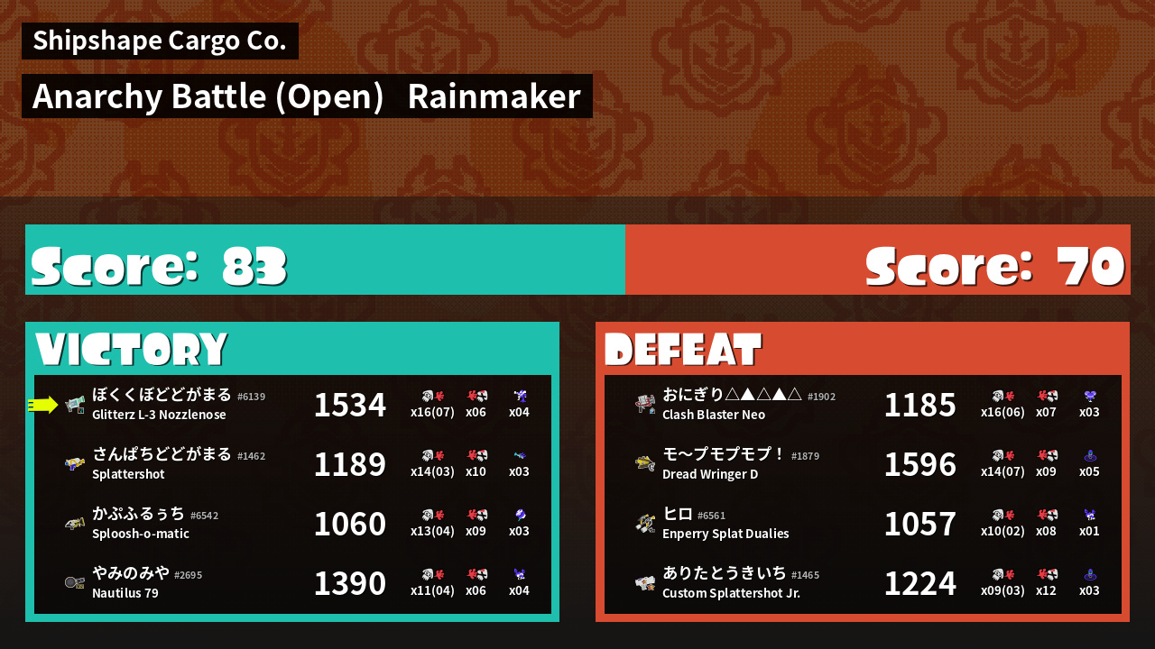 | Mode | Rainmaker - Anarchy Battle (Open) |